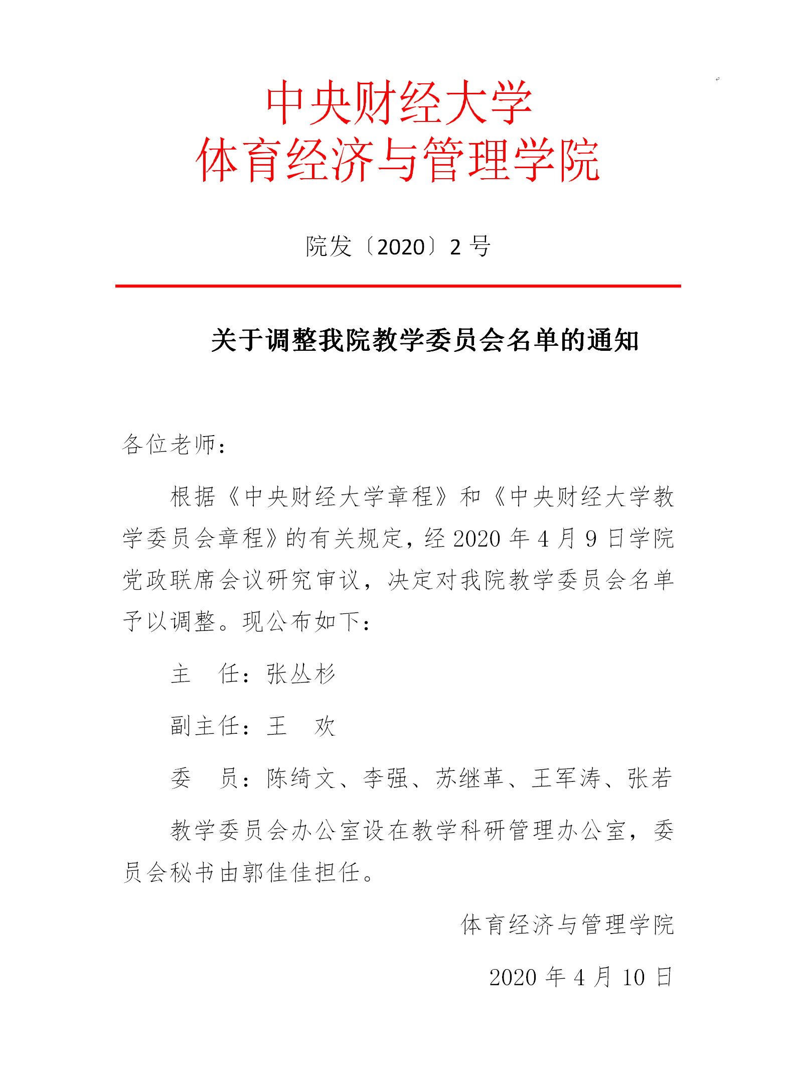 院发〔2020〕2号 关于调整公司教学委员会名单的通知
