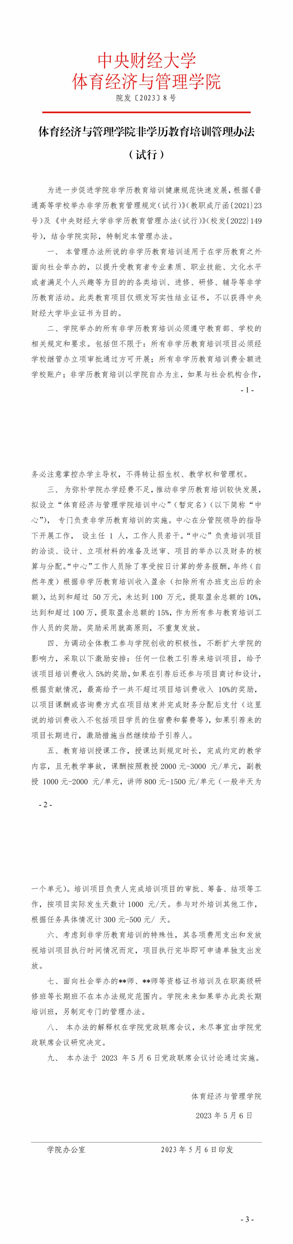 院发〔2023〕8号 太阳成集团tyc122cc非学历教育培训管理办法
