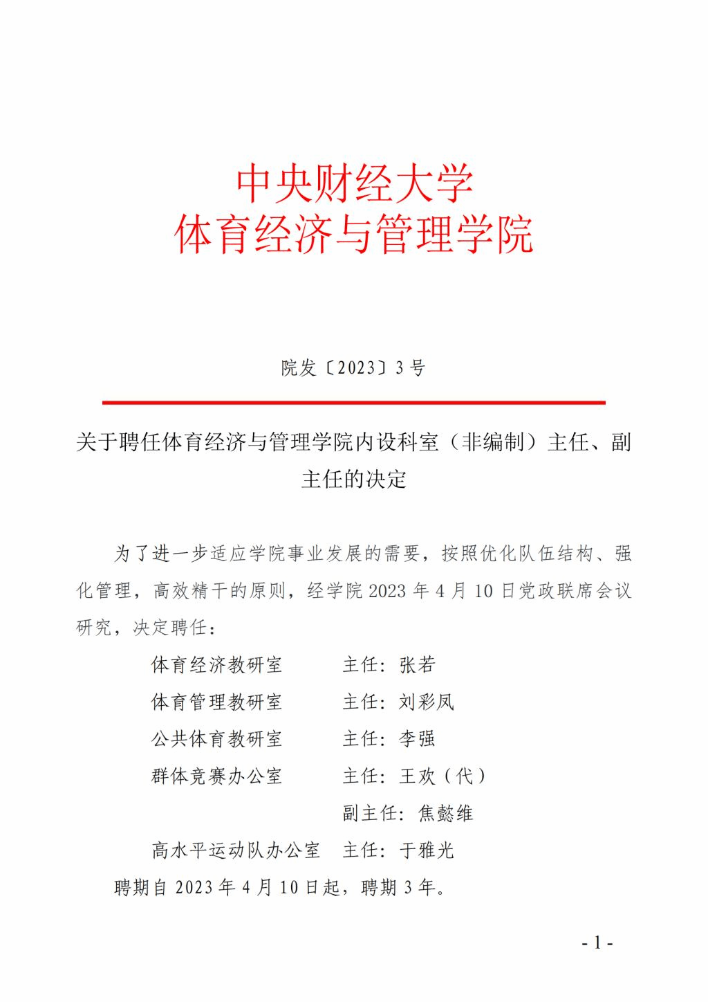 院发〔2023〕3号 关于聘任太阳成集团tyc122cc内设科室(非编制)主任、副主任的决定