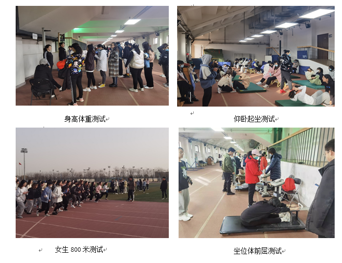 根据教育部体质测试工作相关要求,公司本学期员工体质测试工作于2021年10月25日至11月22日期间在南路校区、沙河校区分别组织开展,测试内容包括身高、体重、肺活量、坐位体前屈、仰卧起坐(女)/引体向上(男)、立定跳远、50米、800米(女)/1000米(男)。