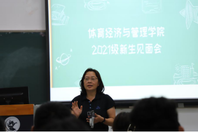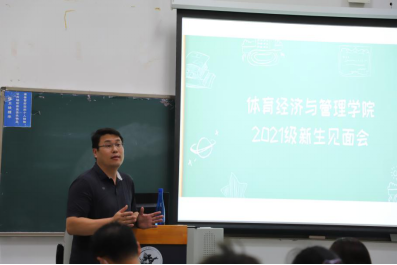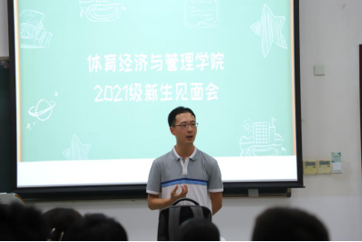随后,体经公司副经理张丛杉老师着重讲述了本院的课程安排、学科介绍、教学内容等等。此外,张丛杉老师还给新生们提供了许多有用的学习建议,他期望每一位同学能够在未来积极主动地与老师进行交流,吸收有益经验。就课程安排问题来讲,他希望每一位同学都能够合理安排时间,有条不紊的完成学业任务,同时不断充实提升自己。