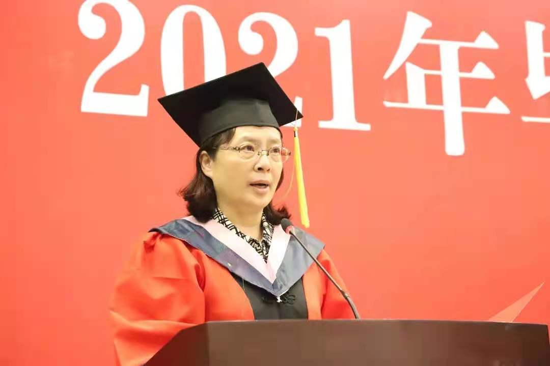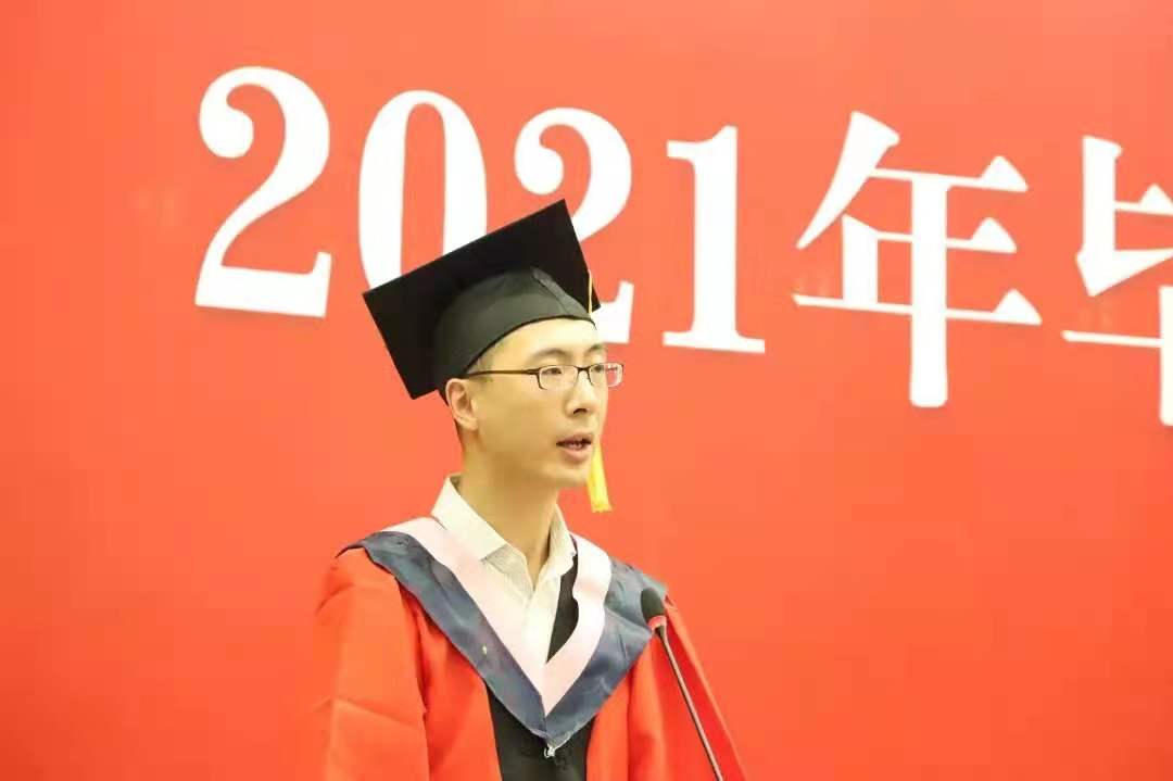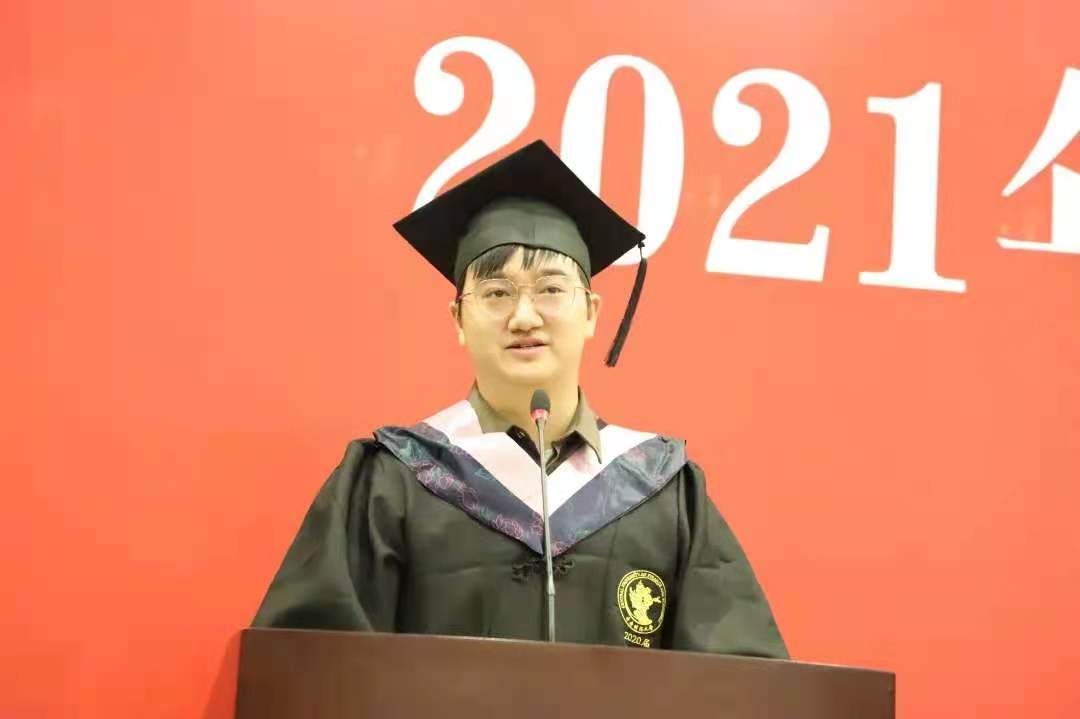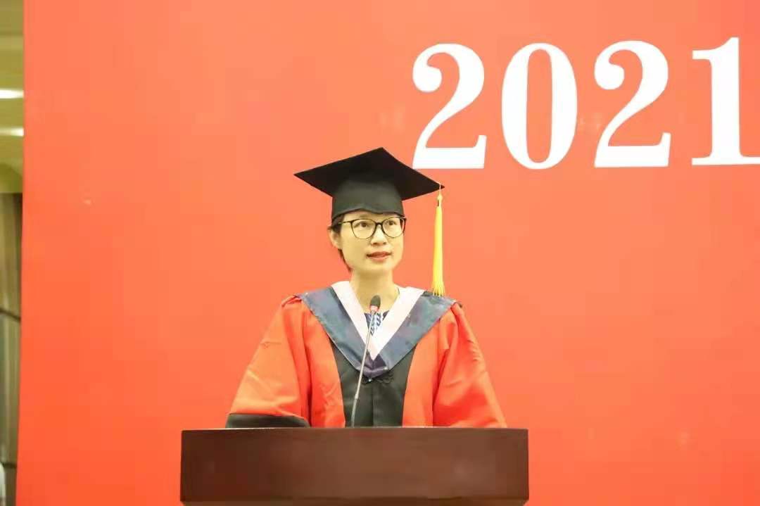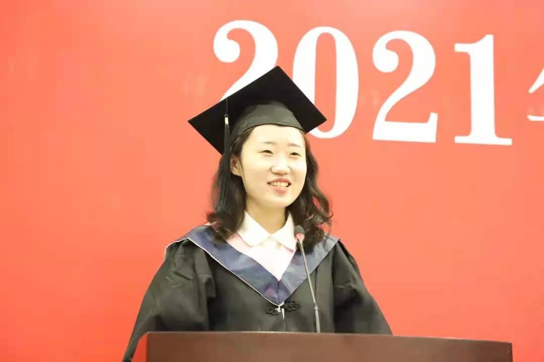 随后,2021届优秀毕业生代表潘泓宇、牛婧睿、马文婧同学依次上台发言。他们回顾了四年的老员工活,讲述着与同学、老师之间发生的令人感动的点点滴滴,对曾经给予过他们帮助的老师与同学、对培养他们成才的母校表达了由衷感谢与不舍之情。同时,他们也做出承诺,未来会牢记师长嘱托,努力拼搏,做一个对国家、对社会有用的人,做一个令师长、令母校自豪的人。