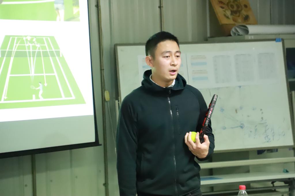 第三位进行展示的是薛雅文老师,他展示的课程是《网球的网前截击技术课程》。他首先引导同学们观看了网前截击技术的精彩比赛片段,提升了同学们的学习兴趣。随后,他通过讲解握拍、关注落点、发力、击球等多个分解动作,辅助同学们更好地掌握动作要领,完成教学目标。最后,他也亲自展示了网前截击技术在实战中的应用,鼓励同学们更好地完成对课程内容的学习和掌握。