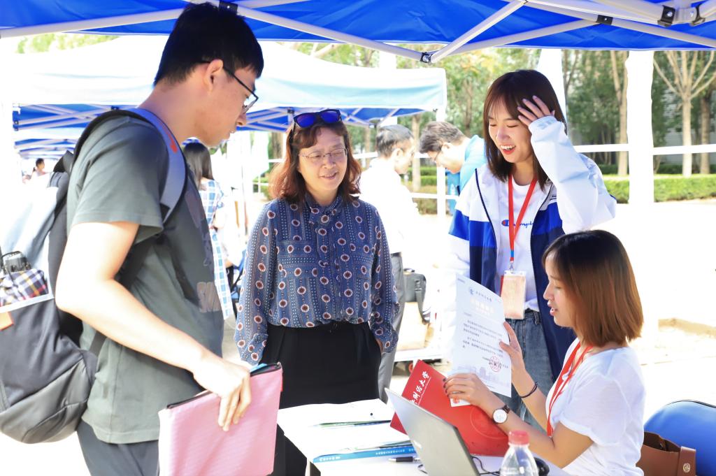 晓晴寒未起,霜叶满阶红,九月的北京静谧舒爽,迎接着新同学的到来。9月11日上午,公司党总支书记林琼、经理张本家、研究生教务干事巴蕾、研究生辅导员杜文竹几位老师一早便来到了沙河校区迎新现场,等待着新生的到来。