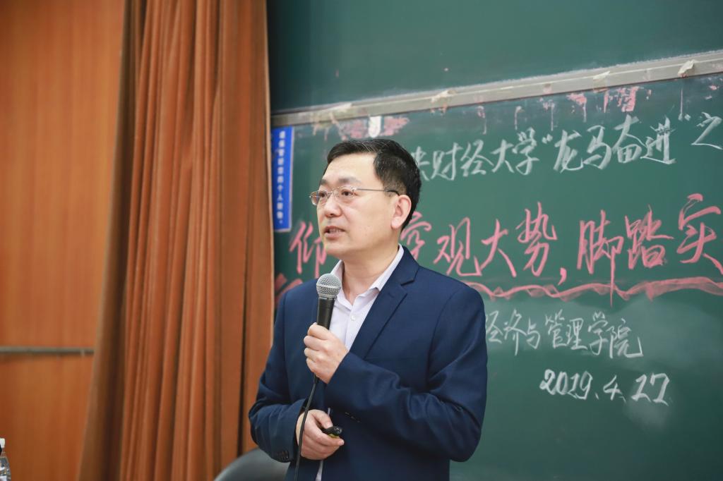 在讲坛上,姜兴华主任将自己几十年的工作经历,与我国体育产业的发展脉络结合起来,以“仰望星空观大势,脚踏实地强本领”为主题,与同学们分享了关于国家体育总局组织架构,习近平总书记关于体育工作的重要论述,人力中心工作概况及与中央财大合作构想等方面的看法。姜主任从习近平总书记关于体育工作的重要论述入手,介绍了体育产业的未来发展方向,希望大家能发展以爱国主义为核心的体育精神,建设体育强国。之后又与体育总局人力资源开发中心的工作经历相结合,介绍了体育职业人才培训,退役运动员的职业辅助问题。最后,介绍了体育总局与公司的合作构想,并对中财的员工进入国家体育总局实习表示欢迎。