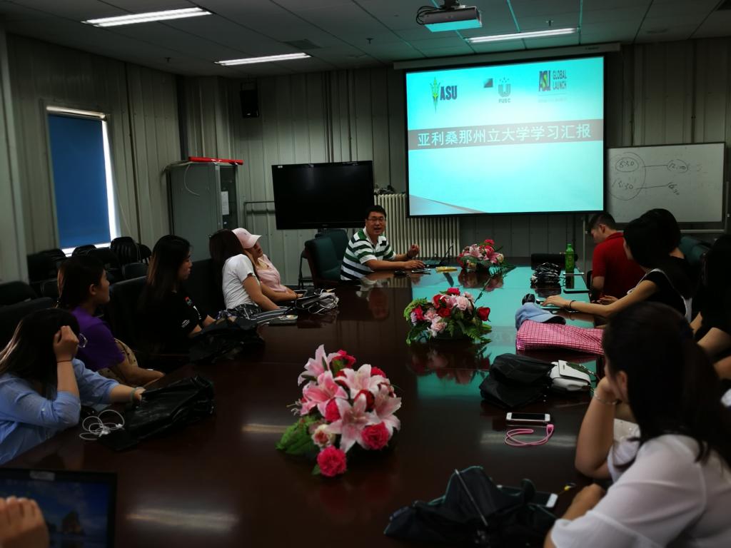 6月19日13点,公司副经理张本家老师于沙河体育馆二楼会议室开展了有关“亚利桑那州立大学访学经历”的宣讲讲座,公司党总支书记林琼教授、15级辅导员李秋月老师及2015级2班的全体员工均到场倾听。