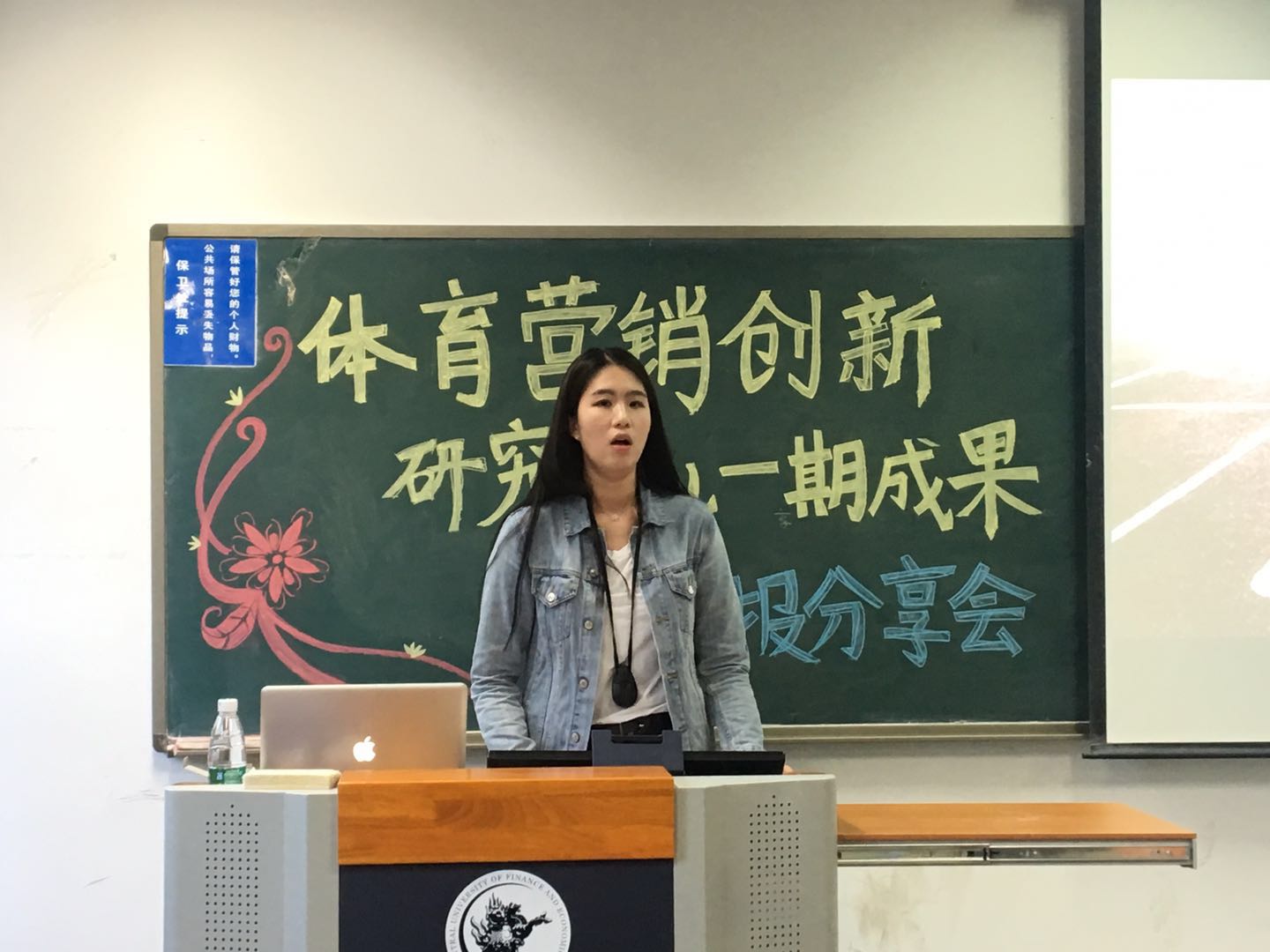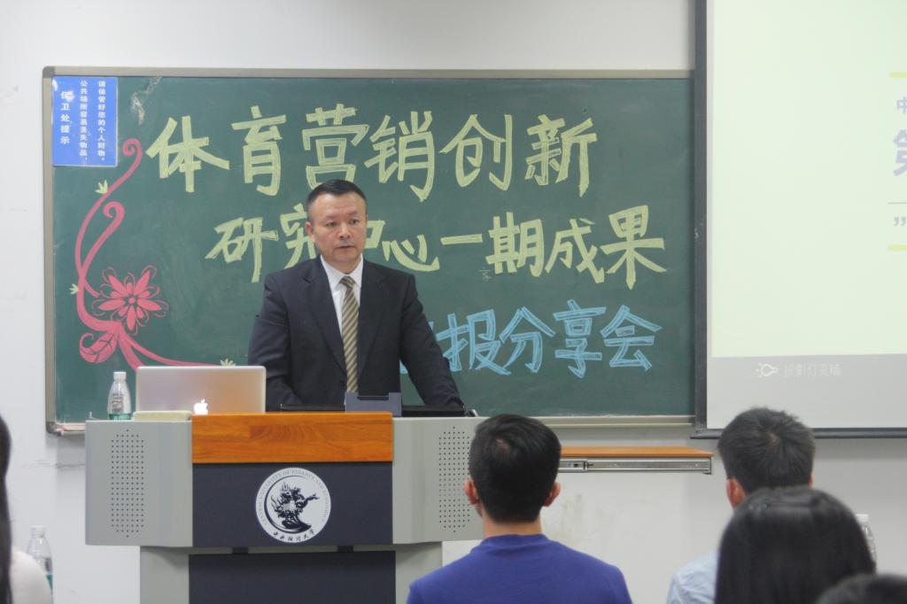 北京宝田国际体育文化传播有限公司董事长王建新先生、人力资源总监李剑女士、董事长秘书张曼女士、宝田国际运营推广团队,公司公司党委书记林琼教授,创研中心首期项目成员王泽宇同学、杨莹昱同学、宋仪同学、王升阳同学,以及公司2015级、2016级、2017级本科生以及2017级研究生共同参加并聆听此次成果汇报分享会。