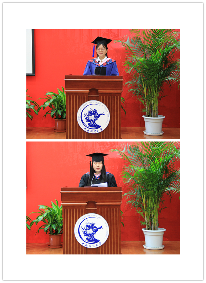 校级优秀硕士研究生毕业生赵薛忆和北京市级优秀本科毕业生张怡代表2017届毕业生上台发言。在发言中,赵薛忆细数在体经公司的学习、工作和生活中的点滴,使她在人生中重要的时期收获了特殊而宝贵的回忆,她更表达了自己对毕业生及公司的美好祝福。张怡追忆了四年学习生活的过往,感恩母校和公司,感恩老师和同学,给予她深刻而美好的回忆。