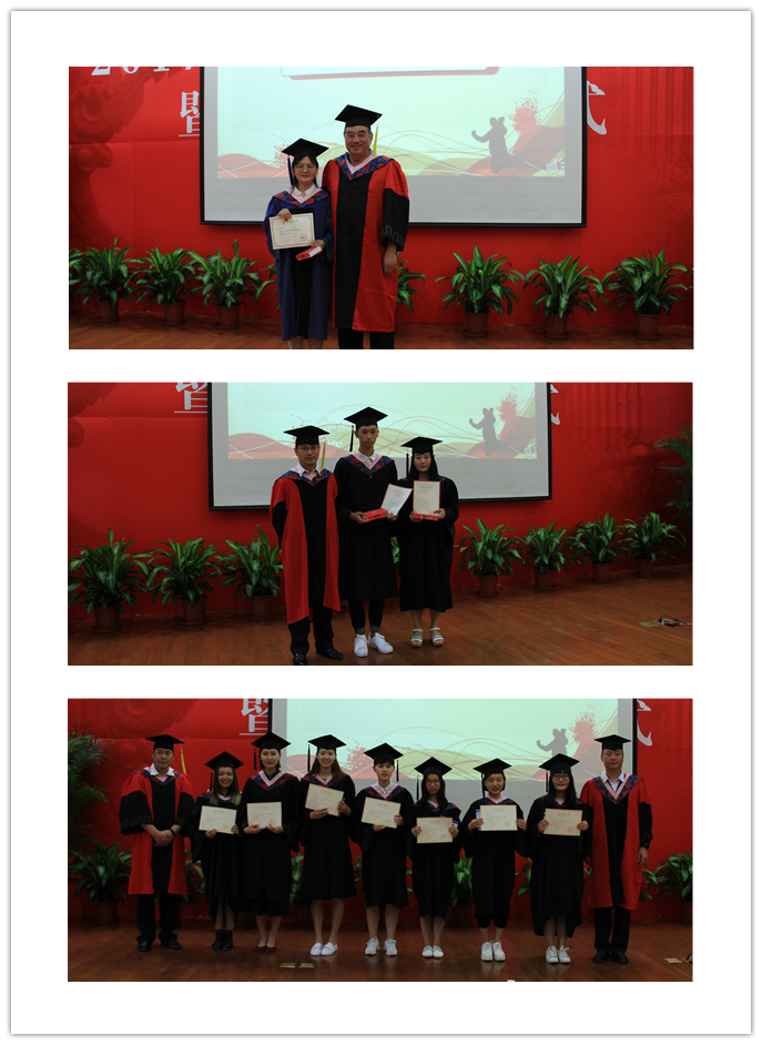 6月25日下午2点,公司在学术会堂202隆重举行2017届毕业生毕业典礼暨学位授予仪式。典礼由公司党委书记林琼教授主持,出席此次典礼的有太阳成集团tyc122cc经理高涵教授,副经理王裕雄、张本家和王欢,公司合作发展办公室副主任、员工总会副秘书长范维,毕业班班主任陈绮文、马法超,专业课教师张自如、刘彩凤、李毳,本科生毕业班辅导员潘骅杰,研究生毕业班班主任巴蕾,教学科研办公室主任郭佳佳,团总支书记张振磊,本科生辅导员李秋月、胡庆,公司公体课教师杨海林、焦懿维和低年级员工代表,以及2017届全体毕业生和其亲友。典礼前,全体毕业生齐聚校门口拍摄了毕业合影。
