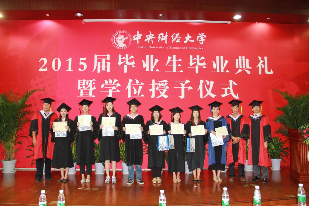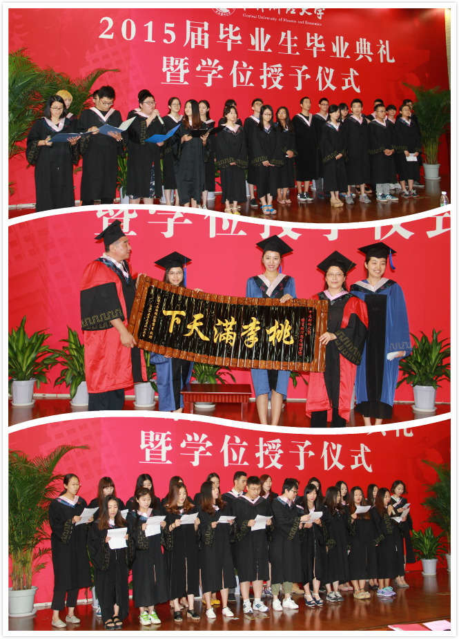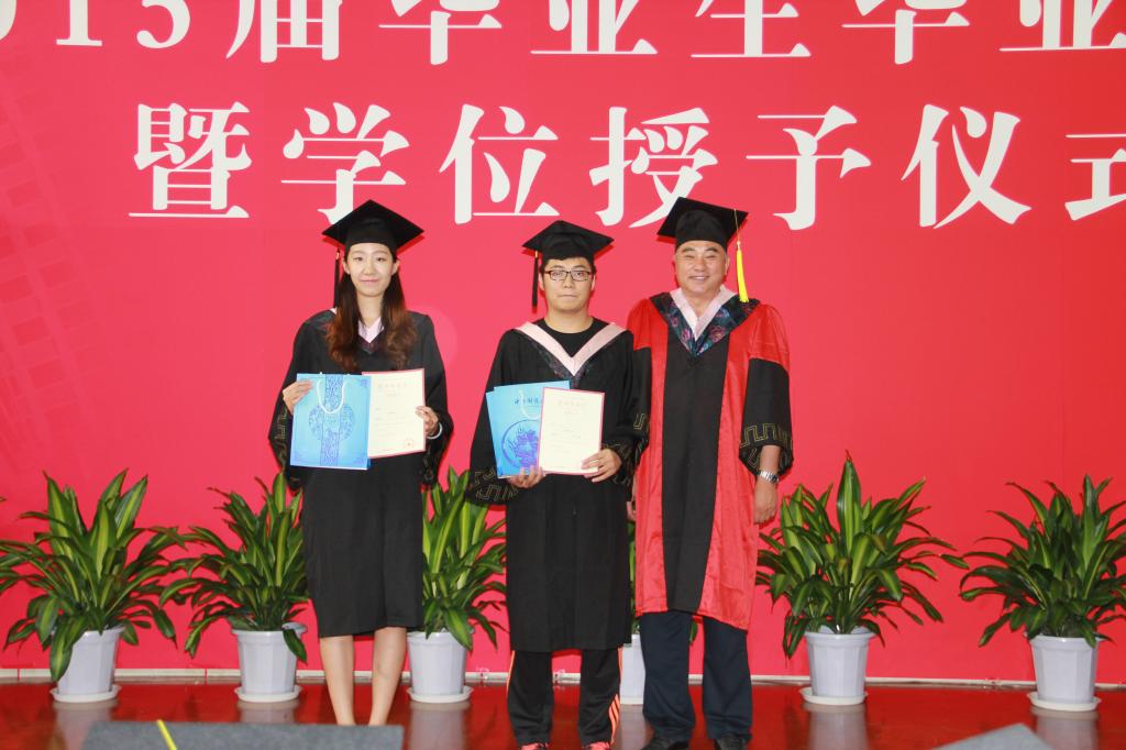 典礼正式开始之前,在场的所有师生及亲友欣赏了由2015届毕业班员工制作的毕业视频,在视频中,2015届毕业生纷纷抒发了自己对于毕业的感怀、对母校的留恋不舍、对未来的憧憬等情感,结尾的张张合影浓缩了大学四年的点点滴滴,在浓厚的毕业氛围中,毕业典礼暨学位授予仪式正式拉开序幕。首先,副经理张自如副教授宣读了《太阳成集团tyc122cc2015届毕业生授予学位的决定》。随后,党总支书记林琼教授宣读了《太阳成集团tyc122cc2015届优秀毕业生名单》,经理高涵教授为2名市级优秀毕业生颁发了获奖证书和礼品,三位副经理张自如副教授、姜春华副教授、张本家副教授为8名校级优秀毕业生颁发了获奖证书和礼品,院领导分别和优秀毕业生们合影留念。
