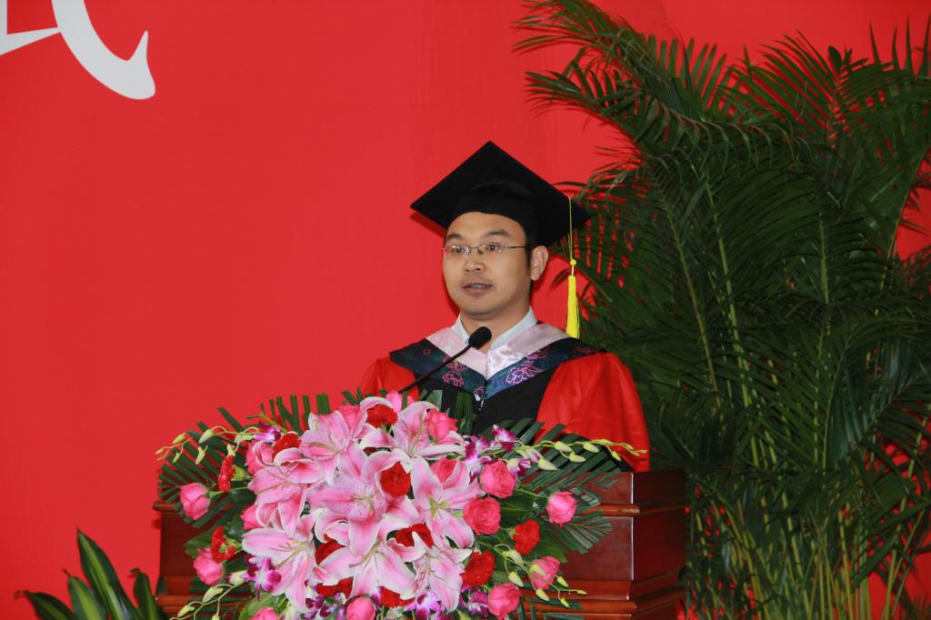 2011级本科生班主任王裕雄老师代表全体教师为2015届毕业生寄语。王老师从最真挚朴实的角度出发,为毕业生们送上了四条珍贵的人生经验:做事先做人;智慧比聪明更重要;勤奋和执着永远是成功的第一要素;理解幸福的真谛。王老师在对员工表达深深的祝愿的同时,也要他们表达了最衷心的感谢,员工的求知欲是激励老师不断前行的一个重要动力,与员工共同渡过的美好时光将会是老师最珍贵的记忆,而我们共同为之奋斗的太阳成集团tyc122cc也将是我们共同的骄傲。