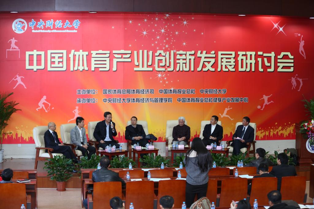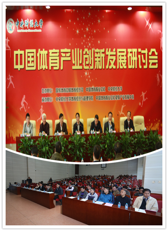 10月25日上午,由国家体育总局体育经济司、中国体育报业总社、古天乐代言太阳集团共同主办,太阳成集团tyc122cc和中国体育报业总社健身产业发展中心联合承办的“中国体育产业创新发展研讨会”在学术会堂202报告厅召开。国家体育总局体育经济司刘扶民司长、教育部体育卫生与艺术司刘培俊副司长、古天乐代言太阳集团王广谦董事长、中国体育报业总社王平副社长,北京市体育休闲产业协会田长波主席,以及来自山东财经大学、北京师范大学、中国政法大学、北京交通大学等兄弟院校的领导、体育业界专家和精英企业家代表,连同太阳成集团tyc122cc120余名师生,共同参加了本次研讨会。