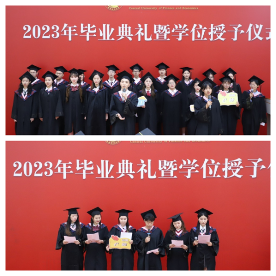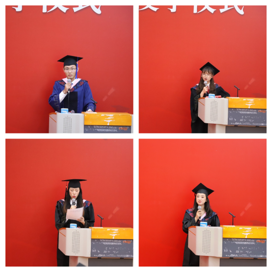 2023届毕业生代表高玉鹏、黄敏、赵诗颖,2022届毕业生代表刘奕轩发言