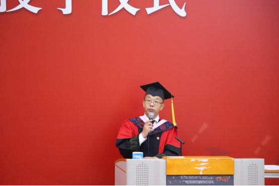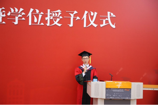 2019级1班班主任王裕雄教授代表任课老师发言。王老师和毕业生分享了三点体会:第一,要做一个简单的人,要勿忘初心用简单来对抗世界的复杂;第二,要做一个纯粹的人,正直、善良、宽容这些美好的品质一定是有价值的,能够为我们带来宝贵的收获;第三,要做一个善于感受幸福的人,要珍惜当下,哪怕幸福不是那么轰轰烈烈。王老师给毕业生们送上殷切而美好的祝愿,“纷繁复杂的人生里一定有很多美丽的风景,但也有很多困难和坎坷。衷心希望大家能够阅尽风景,跨越坎坷!”