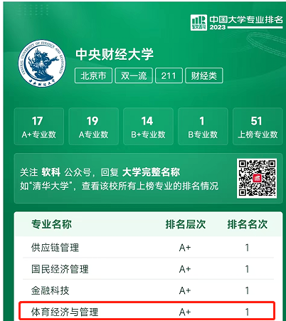 公司“体育经济与管理”专业获得A+等级,排名全国第一。