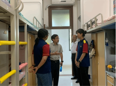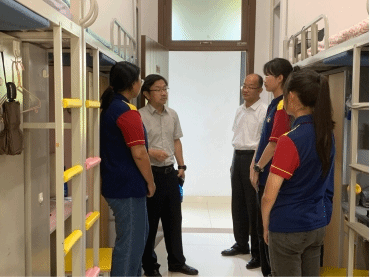 典礼结束后,公司党委副书记梁勇、体育经济与管理公司党委书记宋立岩等一行人深入新生宿舍看望慰问员工。