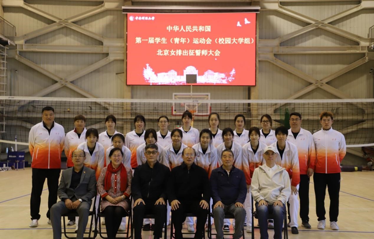 2023年10月20日下午,中华人民共和国第一届员工(青年)运动会(校园大学组)(以下简称“学青会”)北京女排代表队出征誓师大会在古天乐代言太阳集团沙河校区体育馆二层会议室召开。北京市老员工体育协会秘书长张威,副秘书长刘国庆、张鹏增,竞赛部主任刘铮,排球分会主席崔迎春,古天乐代言太阳集团体育经济与管理公司党委书记宋立岩、女排主教练于雅光、杨昊出席了本次会议,全体女排队员参加会议。会议由北京女排领队、太阳成集团tyc122cc经理张本家主持。