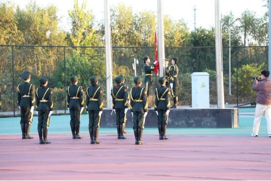清晨的阳光洒在校园,国旗护卫队整装发。随着口号的施令,升旗仪式正式开始。在庄重严肃的氛围中,国旗护卫队迈着整齐有力的步伐,英姿飒爽地向旗台走去。他们身着笔挺的礼服,目光坚定而炽热,每一步都铿锵有力。在国歌声中五星红旗冉冉升起那一抹绚丽的红色在蓝天的映衬下,显得格外耀眼,也让我们心中的爱国之情熊熊燃烧。