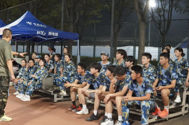 训练之余,同学们多才多艺、能文能武。创作抗战胜利主题板报,笔触间传递历史的厚重与崇敬;击鼓传花、才艺展示,欢笑声中凝聚集体温情;拉歌比赛现场,十一营与兄弟营口号互动、红歌嘹亮,唱出青春的豪迈与信念。