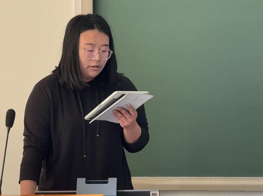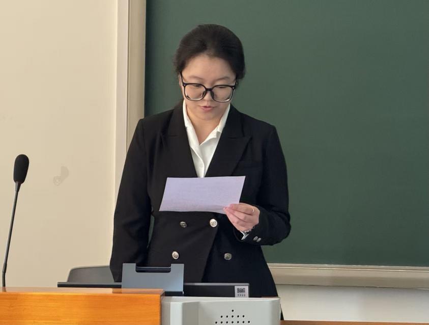 首先进行的是国家奖学金答辩。候选人高馨怡、白一童、徐钰铎三位同学依次上台,分别从学业成绩、科研成果、社会实践、综合素质等多个维度,全面展示了各自在校期间取得的优异成绩与成长收获。