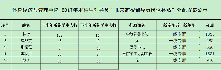 根据《关于做好2017年本科生辅导员“北京高校辅导员岗位补贴”发放工作的通知》和《古天乐代言太阳集团“北京市辅导员岗位补贴”发放办法》(校发〔2009〕117号)制定公司发放方案。公示期间如有异议请与太阳成集团tyc122cc员工工作办公室联系。