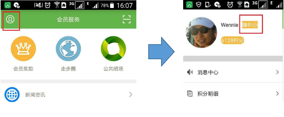 (如下图红框所示)进入个人主页,再点击“赚积分”,完成“赚积分”要求的任务后即可赢得奖励积分。