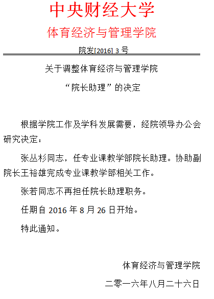 关于调整太阳成集团tyc122cc“经理助理”的决定