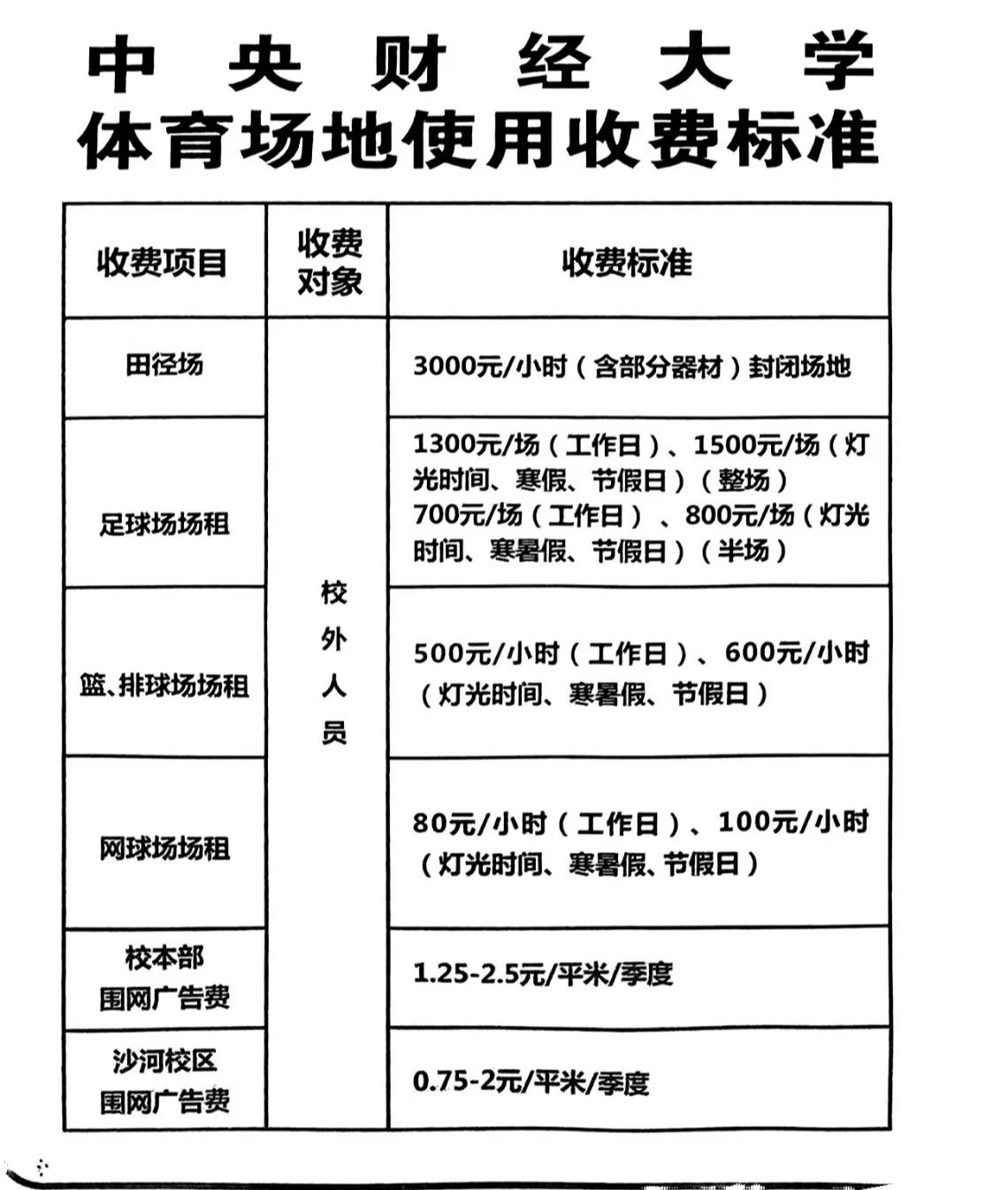 体育网球场租,针对校内师生收费标准不做调整。具体执行标准如下: