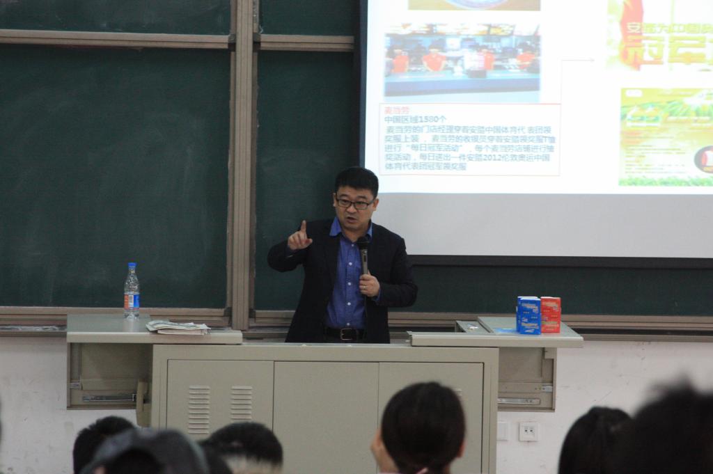 之后,张涛结合自己真实的工作经历,以安踏与中国奥委会合作的事件为例,向同学们展示了安踏是怎么通过赞助、营销2009-2012年一系列的重大体育赛事,实现产值增加、股票市值上升及知名度的大幅提高。在互动环节,同学们踊跃向提出问题,张涛先生耐心详尽地为给同学们解答,会场气氛热烈。