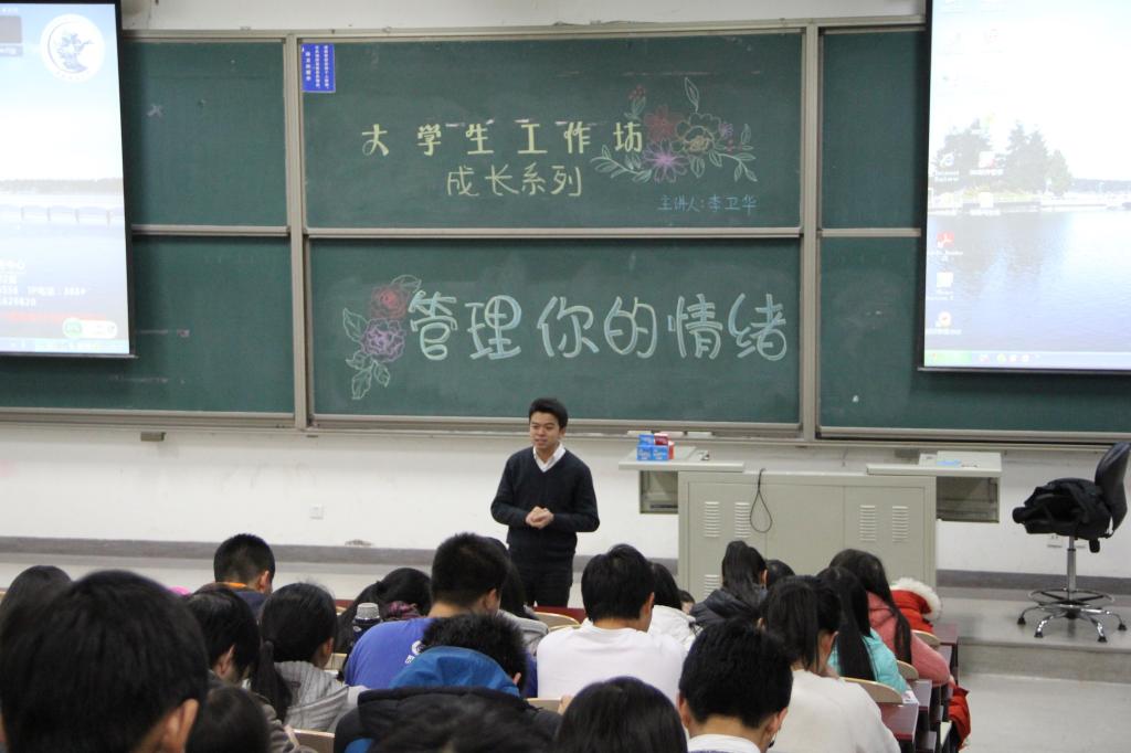 11月20日晚18:30,由员工处老员工心理素质教育与咨询中心主办,太阳成集团tyc122cc与社会发展公司联合承办的老员工成长系列工作坊之“管理你的情绪”讲座在沙河校区东区主教学楼107教室举行,本次讲座邀请到北京航空航天大学心理咨询中心专职教师、国家二级心理咨询师李卫华担任主讲人,两个公司沙河校区全体员工参与了讲座。