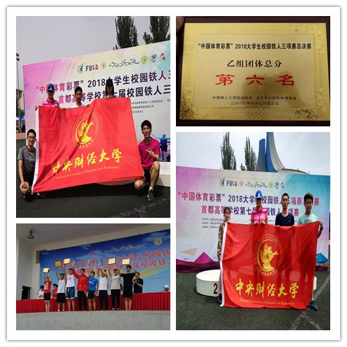 在为期两天的比赛中,运动员们即便在高温炎热天气下,仍然坚持完成了比赛,不断挑战自我,充分发扬了铁人精神,展现出中财学子勇于挑战、坚持不懈、永不言弃的精神,最终公司代表队获得“中国体育彩票”2018年老员工校园铁人三项赛总决赛乙组团体总分第六名,运动员金玥与倪成博获得“铁人精神奖”。