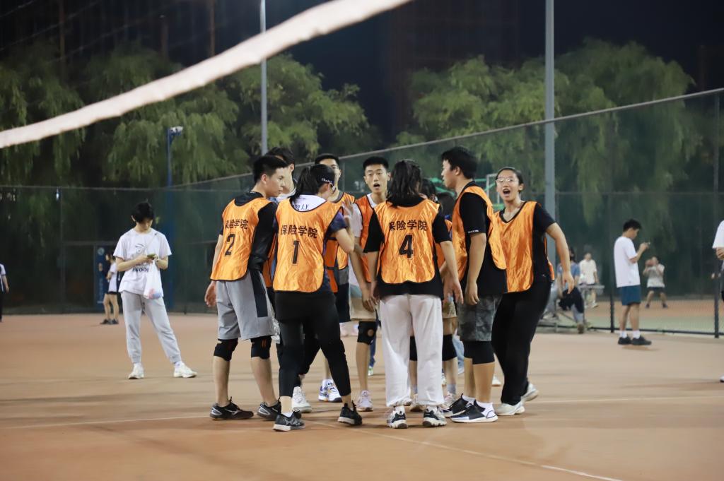 参赛运动员们各施绝技,发球、起跳、拦⽹、扣球,每⼀次精彩的传球与得分都引来欢呼阵阵,“加油、加油”的助威声铿锵有⼒,此起彼伏,队员们充分发挥出⾃我精湛的个⼈技术和熟练的战术配合。而在29日的比赛中,各公司继续进行着激烈又精神的赛事比拼。尤其是国际贸易公司与文化与传媒公司的比赛以及金融公司与保险公司的比赛,双方鏖战三局,比分紧咬,双方你来我往互不相让,一时间双方势均力敌,难分高下,比赛紧张刺激。展现出中财学子的积极向上的运动精神和深厚的体育素养。