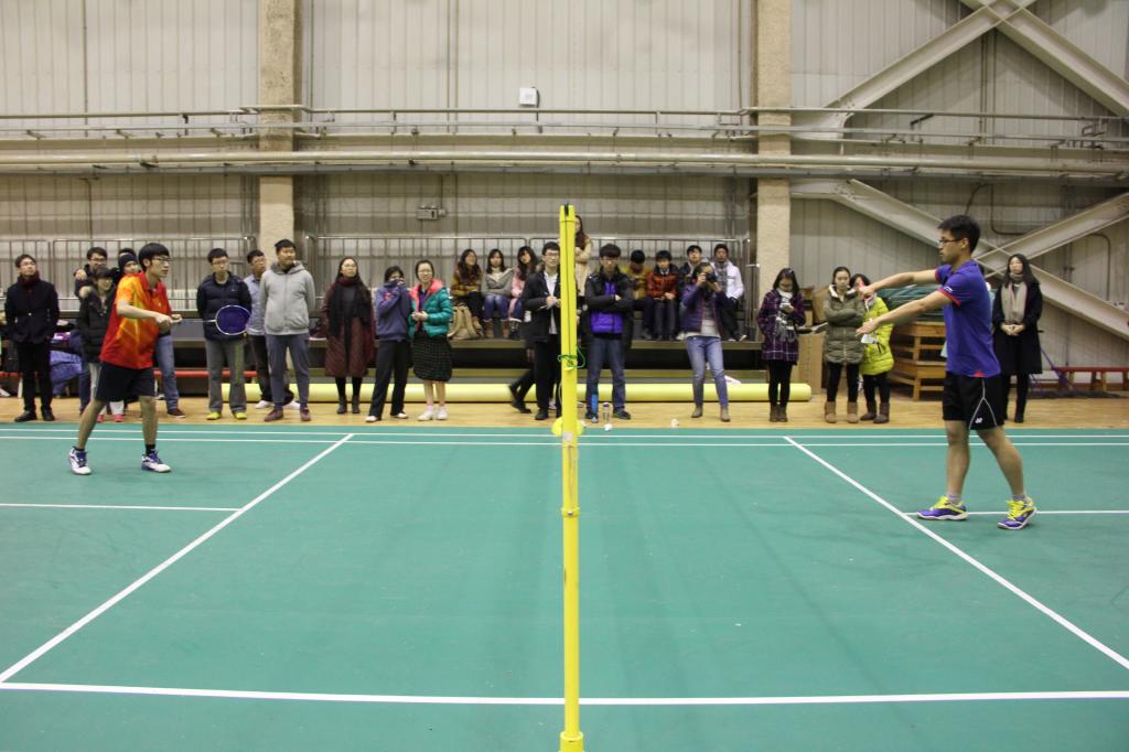 25日晚,随着大批的观众涌入体育馆,决赛也在欢呼声中开始了。首先进行的是男单的比赛,激烈的对决和快速的比赛节奏立刻就点燃了现场的气氛。场上呐喊声不断,场下也掌声连连。两边男单选手你来我往,互不相让,为这场精彩的决赛开了个好头。男单比赛以统数公司获胜而结束。然而团体运动的魅力正在于要取得最终的胜利必须大家共同努力。在紧接着的混双、女双和男双比赛中,作为冠军之争的两队都没有让大家失望,精彩的扣杀与救球贯彻整场决赛,将现场的气氛推向一个又一个高潮。选手们帅气而潇洒的挥拍、灵巧飘逸的步伐令人赏心悦目,也让我们充分感受到了羽毛球这项运动的魅力。最终,统数公司以大比分3:1赢下了决赛。裁判宣布比赛结束的那一刻,获胜一方的选手与观众们都激动地冲向了场地中央庆祝胜利。而在另一边的场地上,三四名的角逐也在欢呼声中结束了,政管公司也以3:1获胜,取得了第三名。