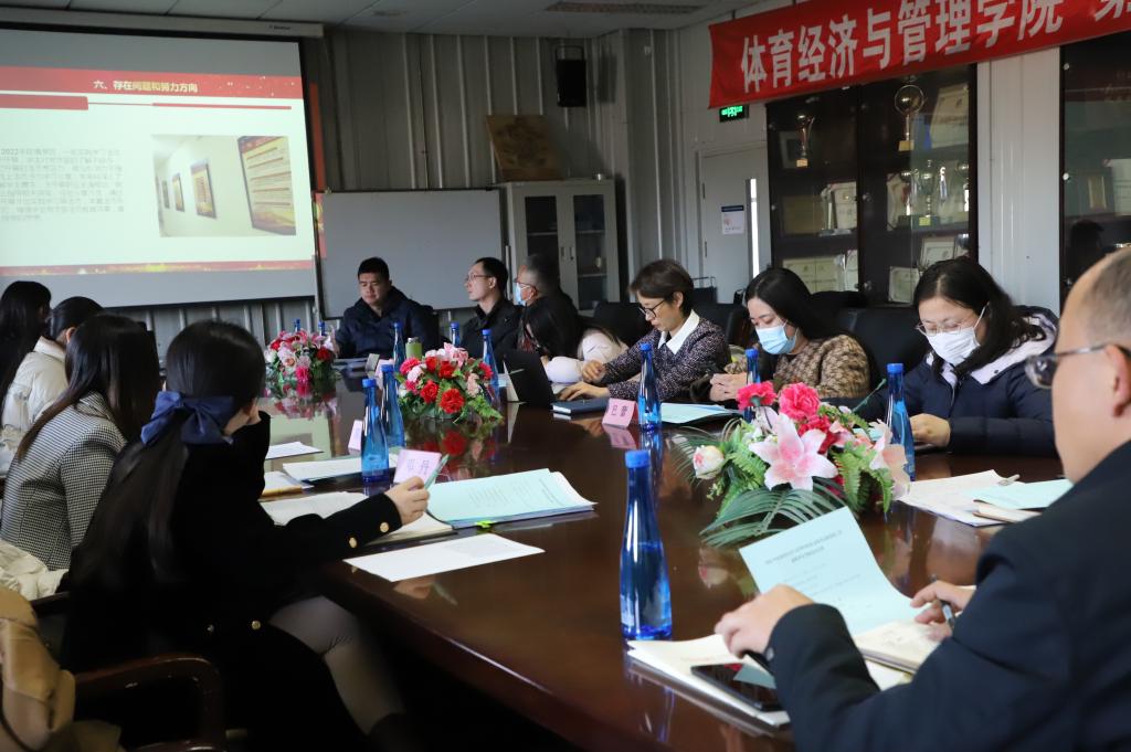 体育经济教研室党支部书记李毳就主要做法和成效、产生的问题及其对应的解决措施进行总结,她着重分析了当前党支部建设存在的问题,下一步将不断加强理论学习,尝试多元化的学习方式,持续加强课程思政建设。