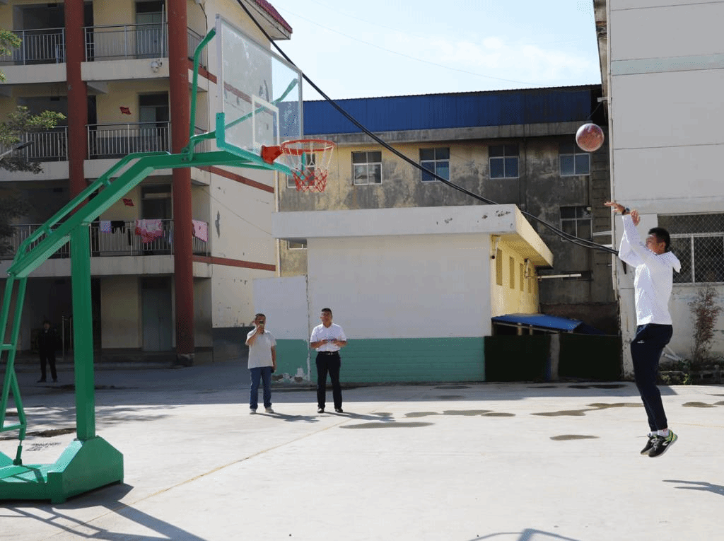 仪式结束后,公司教师同哈达铺小学教师在篮球场就体育课教学展开了交流,公司群体竞赛办公室主任杨海林、副主任黄丽娜两位公体课教师展示了公司篮球课的教学内容,对老员工篮球考试标准进行了动作示范。