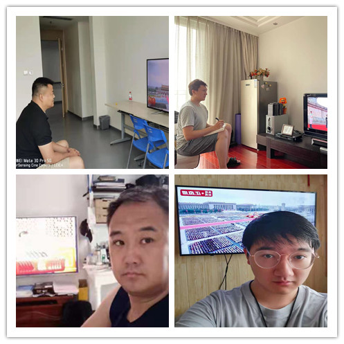 7点30分,公司领导、教工党员代表、员工党员代表、入党积极分子代表与在校员工齐聚沙河校区主教105教室集中观看了直播。公司辅导员和部分员工骨干参加了公司的庆祝中国共产党成立100周年7月1日系列活动,出席了沙河校区早晨7点10分的升旗仪式,并在公司的组织下集中收看直播。部分师生在家观看了直播并积极参与到讨论中来,有的员工看完庆祝大会直播便撰写了入党申请书。