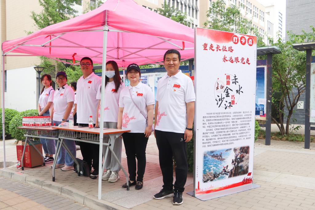 根据活动整体安排,公司牵头负责前4个主题教育展示点的服务工作——瑞金、湘江、遵义和赤水、金沙江。为保证5月19日当天活动的顺利开展,公司12名员工党员、积极分子在李秋月、张振磊两位教工党员的组织下,利用课余时间完成了600张集章卡的盖章准备工作,并为参加本次活动志愿服务的300多名师生提供了加盖所有展示点印章的纪念卡,累计盖章超过4100个。