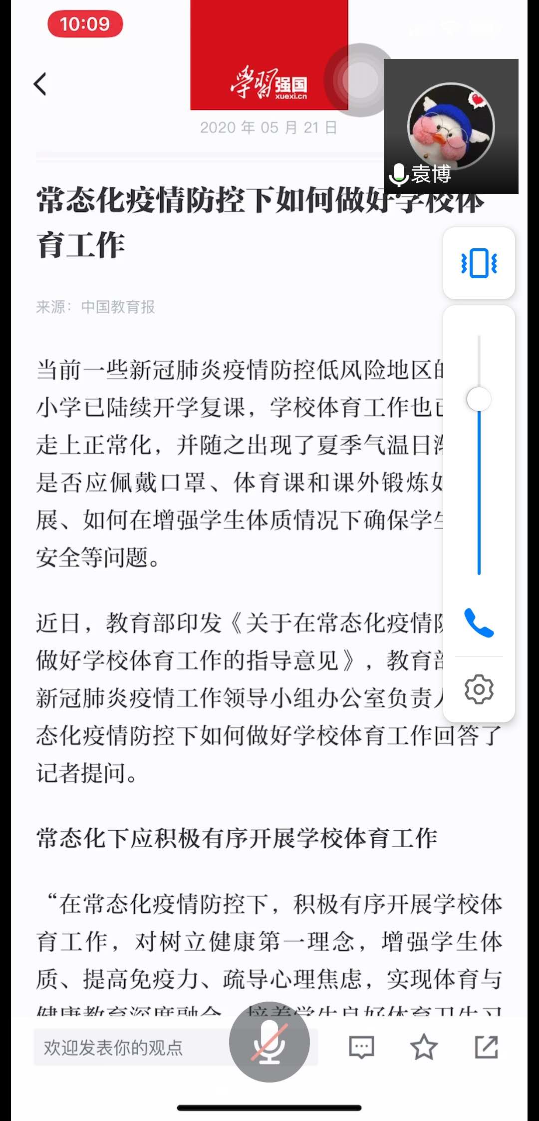 7月23日上午10点,公体教工党支部开展了《常态化疫情防控下如何做好公司体育工作》主题微党课,本次活动分为了两个部分,第一个部分由党支部副书记袁博同志进行讲授和传达教育部的相关精神,并对老师们的业务能力和知识储备提出了要求。第二部分由支部书记杨海林带领大家集中学习视频教材《体育与健康》课程第一课,主题是:“为了国民体质健康,我们必须行动起来!”,这引发了教工党员们的热烈讨论,之后支部书记对暑期的理论学习工作进行了布置。