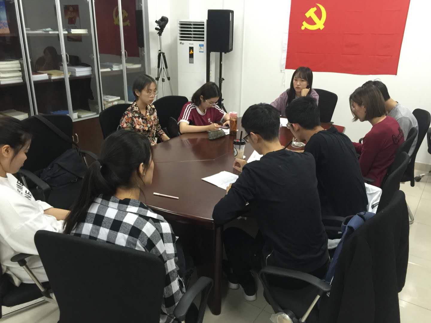 会议第一项议程是支部书记换届选举,在正式党员的投票表决以及在场所有预备党员的监督下,选举产生了新的支部书记:杜文竹同志。随后支部成员对学习郑德荣等同志先进事迹的心得进行分享。