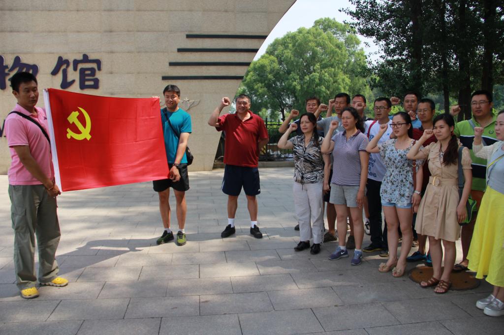 在参观博物馆之前,全体教工党员重温入党誓词。党员们右手握拳过肩,面对党旗庄严宣誓,声音洪亮,群情激昂。通过重温入党誓词,党员们回顾了当年入党的决心和信念,增强了自己的党性意识,提升了作为一定共产党员的使命感,更加坚定了共产主义信念。