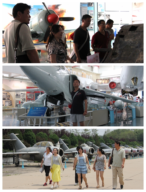 最后,老师们来到“综合展馆”参观,馆内展出各种展品达3.5万余件。其中,中国空军的新型飞机、地空导弹、雷达等陈列品构成一道亮丽的现代航空风景线,震撼着每位党员老师的心。