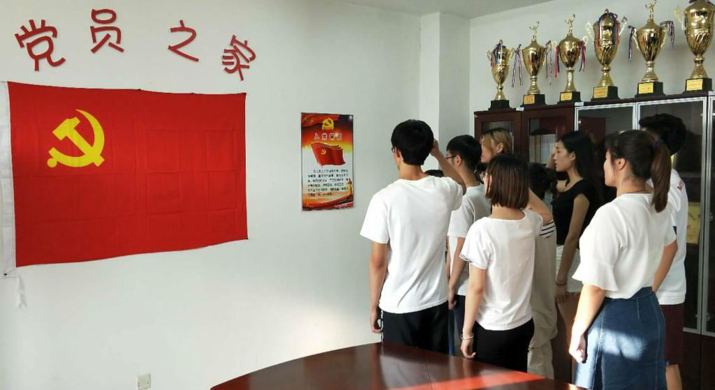 预备党员面对党旗进行入党宣誓,是发展党员工作的必经程序,是党组织对预备党员入党后进行的一次庄严而生动的党性观念教育,也是预备党员进行自我教育的良好形式。为加强对新入党同志的党纪党性教育,组织老党员回顾当年入党的初心和信念,主题党日活动的最后,党支部书记胡庆老师组织新党员集体宣誓、老党员重温入党誓词。