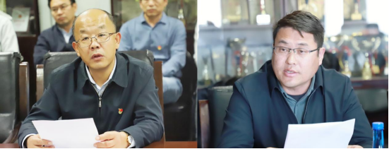 党委书记宋立岩作表态发言、经理张本家主持会议