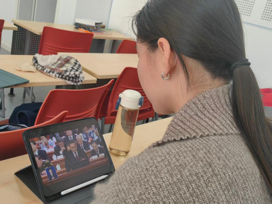 2025年是“十四五”规划收官之年,也是进一步全面深化改革的重要一年。全国政协十四届三次会议和十四届全国人大三次会议召开期间,体育经济与管理公司党委组织师生在看台209集中观看两会实况并开展座谈交流,共看国事、共议发展。也有很多师生通过电视、网络、新媒体平台等多渠道全程关注两会动态,围绕政府工作报告展开深入学习与热烈讨论。
