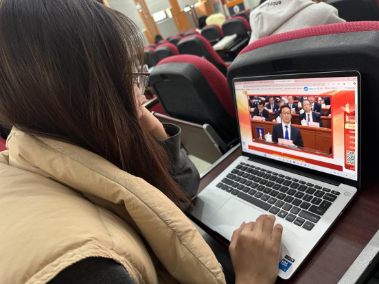 本科生党支部党员范兆卓然:在观看过两会开幕和李强总理做政府工作报告后,我深感青年与国家发展步伐之紧密关联。报告指出2025年我国经济在复杂外部环境下规模稳步扩大,GDP增长5%,产业升级进展向好,“创新”作为高频词贯穿全文,强调科技自立自强与产学研协同的重要性,启示我们应当夯实专业基础,发展复合型技能,将创新成果转化。我还注意到报告中提出实施提振消费专项行动,我在去年也切实体会到了国家消费品补贴的优惠,国家不断推动消费结构优化,畅通内循环,同时报告中提出释放体育消费潜力,这对于促进体育赛事、健身休闲市场发展有着重要意义,而我们作为有担当的青年,应该在“稳就业,保民生”目标下将个人职业规划与社会需求同频共振践行责任,仰望星空关注宏观趋势,脚踏实地锤炼过硬本领。