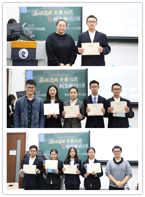 活动最后,经过评委们的深入讨论,反方队伍获得新生辩论赛的冠军,正方队伍获得亚军,反方四辩魏少波同学获得“最佳辩手”称号,评委依次给大家颁发奖状与奖品。