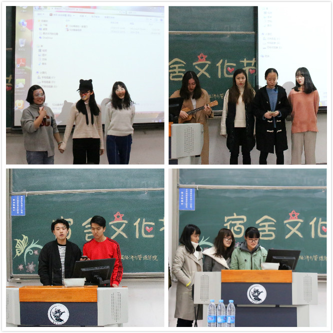 经过抽签确认出场顺序后,各宿舍依次上台进行风采展示。各宿舍展示各具特色,别出心裁,尤其在宿舍才艺展示环节,517宿舍用尤克里里伴奏演唱了《告白气球》;515宿舍集体表演了节奏欢快的杯子舞;512宿舍的四位女生将《没什么不同》和《相亲相爱的一家人》进行串烧演唱,温馨美好;616宿舍同学用一首粤语歌曲《七友》打动了观众的心;513宿舍同学演唱的奥特曼主题曲唤起了同学们童年最珍贵的回忆;516宿舍同学用逗趣可爱的语言向我们介绍了她们温馨的“猪猪佩奇”一家。
