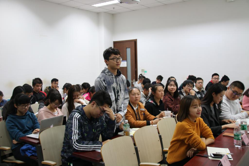 在对十四条基本方略的解读中,林老师结合学习工作实际和专业具体情况为同学们提出了亲切叮嘱。“坚持党对一起工作的领导”,林老师强调了“四个意识”,即政治意识、大局意识、核心意识和看齐意识,要求学员们要自觉在思想上、行动上与党中央保持高度一致,同时要在学习和研究中找准自己的位置;“坚持全面深化改革”,林老师指出我们所处的时代是一个变革的时代,唯一不变的就是不断发展变化,产业的发展有各自的频率,体育产业也是一样,我们需要找到它变化的频率,与时俱进,顺势而动,适应时代的变化;“全面依法治国”,林书记再次强调了大家要有法制观念,要有遵纪守法的意识。针对党的十九大提出的十四条基本方略,林老师严谨幽默的为全体学员进行详略得当的解读。