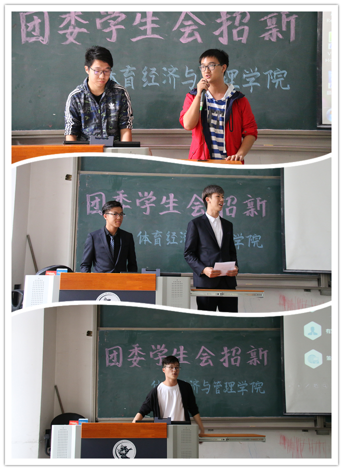接下来,进行团委、员工会招新宣讲。九个部门依次上台进行宣讲,介绍每个部门,欢迎各位新生。各部门负责人将本部门介绍的详细生动、各有特色——办公室的详细清晰、文艺外联部的正式庄严、青年志愿者协会的贴近生活、生活部的深入人心、体育部的有力感召、宣传部的别具一格、学术实践部的引人注目、组织部的有条有理、项目部的风趣幽默。各位负责人针对本部门的特点,全面的向新生们展示了部门职能,使新生对各部门有了充分的了解,有利于他们做出合适的选择。