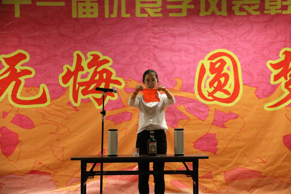 在主持人与观众互动环节,林琼老师受邀也即兴清唱了歌曲《yesterday once more》,赢得了现场热烈的掌声。随后的舞蹈串烧《群魔乱舞》则结合了当下流行歌曲seve以及广播体操等元素精心编排,时尚流行中又不失怀旧。“体经欢迎你,用运动感动你”——由公司团总支员工会全体部长共同改编表演的歌曲《留声2016之部长对你说》,表达了学长学姐对于16级新生的热烈欢迎和殷切期盼,同时也完美诠释了过去这个学期里各个部长对于16级新生部员干事的友好“传帮带”作用。